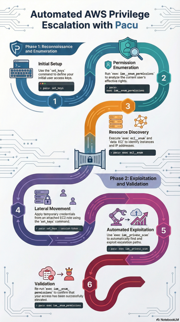 Pacu’nun en güçlü olduğu nokta burasıdır. Elinizdeki mevcut yetkilerle daha yüksek (Administrator gibi) yetkilere ulaşıp ulaşamayacağınızı otomatik olarak kontrol etmek için exec iam__privesc_scan komutu kullanılır. Bu modül sadece açıkları taramakla kalmaz, aynı zamanda tespit ettiği yetki yükseltme yollarını istismar ederek size daha yüksek haklar kazandırır.